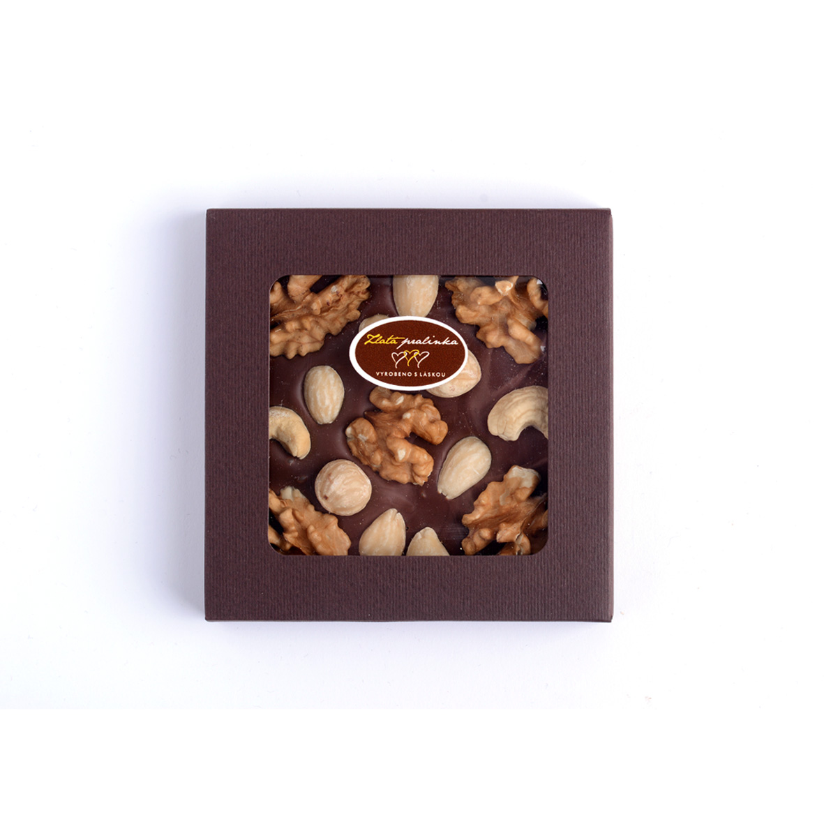Mléčná čokoláda s oříšky v krabičce