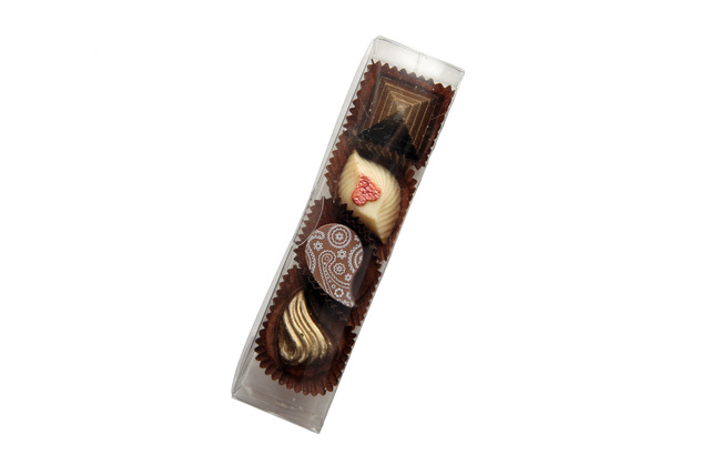 Krabička se 4 pralinkami, 38-40 g. Foto je ilustrační.